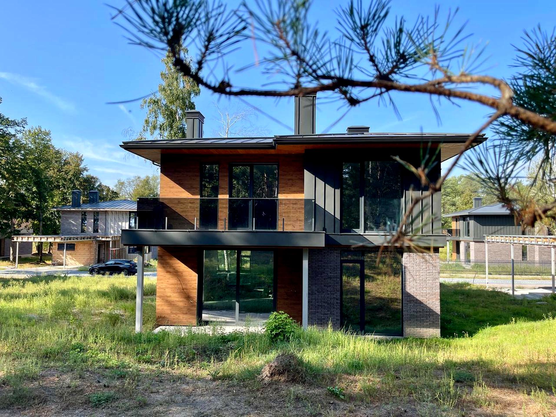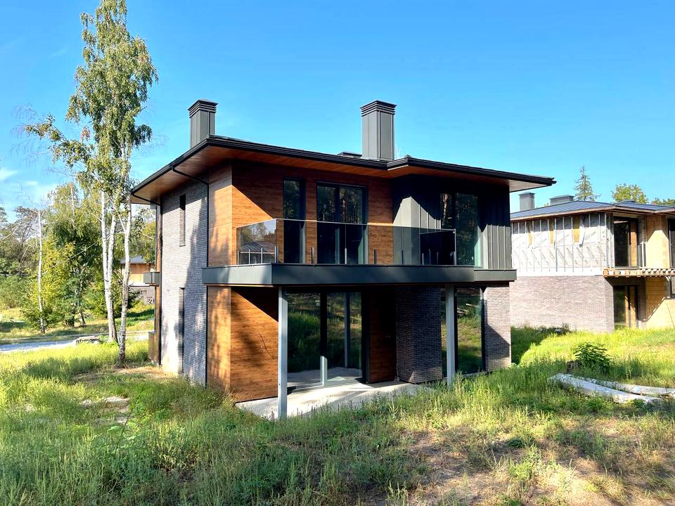 До Вашої уваги пропонується новий будинок в котеджному містечку PROЦВІТ (Процвіт) в мальовничому селі Проців, що поблизу Києва. Будинок розташований на ділянці 10 соток з власним виходом до хвойного лісу, в процесі оформлення ще 10 соток лісу в оренду. Сучасний двохповерховий будинок на монолітній фундаментній плиті (250) + фундаментна стрічка з глибиною залягання 1,2 м., стіни – керамічні цегляні блоки, утеплени базальтовою ватою з варіантом виконнаня дихаючого фасаду (380+100), перегородки – цегла (120), перекриття – монолітна з/б плита, підлога – бетонна підготовка + чистова цементна стяжка, панорамні вікна – алюмінієві системи, розсувні конструкції, покрівля – фальцева, утеплена базальтовою ватою - Ізоват (200).