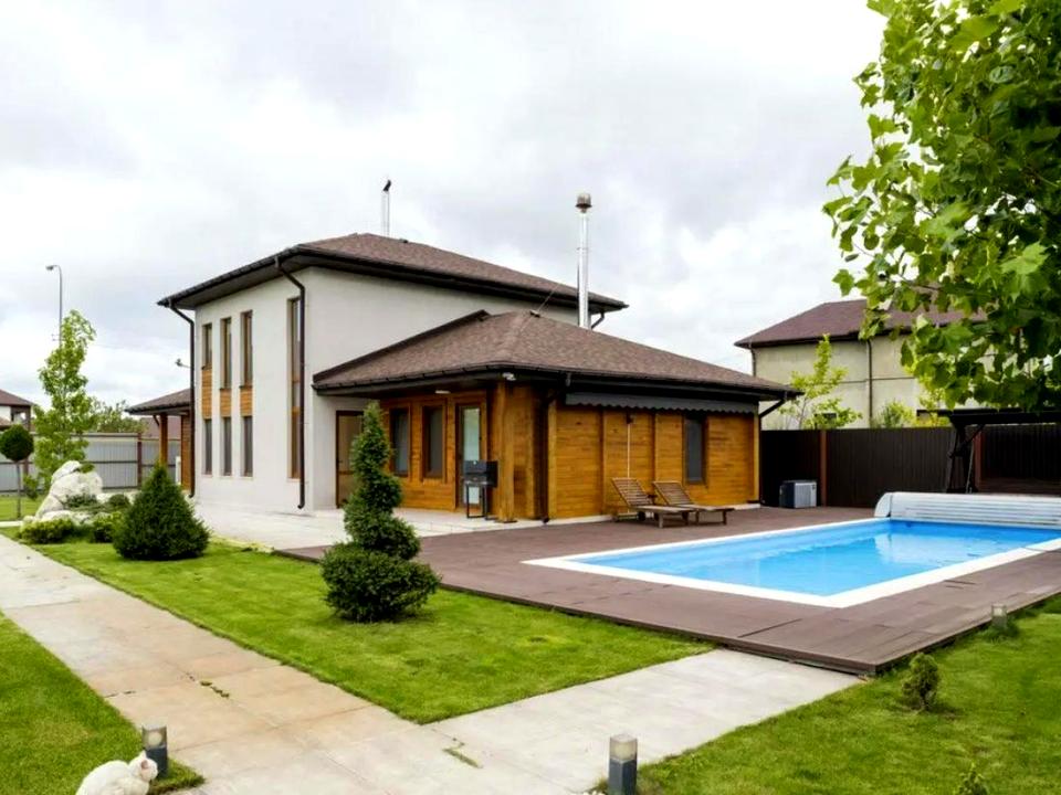 Пропонується стильний триповерховий будинок загальною площею 222 м², розташований на просторій ділянці 25 соток у закритому котеджному містечку з охороною, відеоспостереженням та асфальтованим під’їздом.