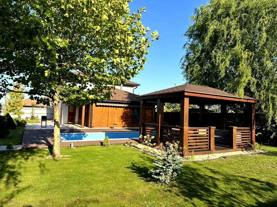 Будинок, 3 поверхи, 5 кімнат. Площа ділянки 25 соток. Висота стелі 3 метра. Покриття підлоги: покриття підлоги - плитка, покриття підлоги - ламінат. Тип кухні - кухня-студія. Загальний стан будинку - З ремонтом. Опалення котел газовий. Кількість санвузлів: 3. Кількість паркомісць: 2. Кількість спален: 5. Комісія за послуги 2 %