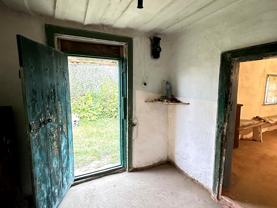 Будинок (глиняний) має 2 кімнати та комору.