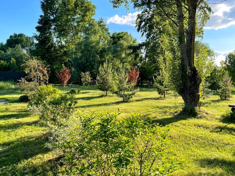 На ділянці 15 соток розташований ландшафтний сад з великою кількістю декоративних рослин, включаючи сад сакур, що навесні створює справді казкову атмосферу.