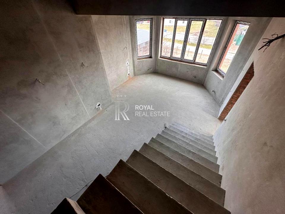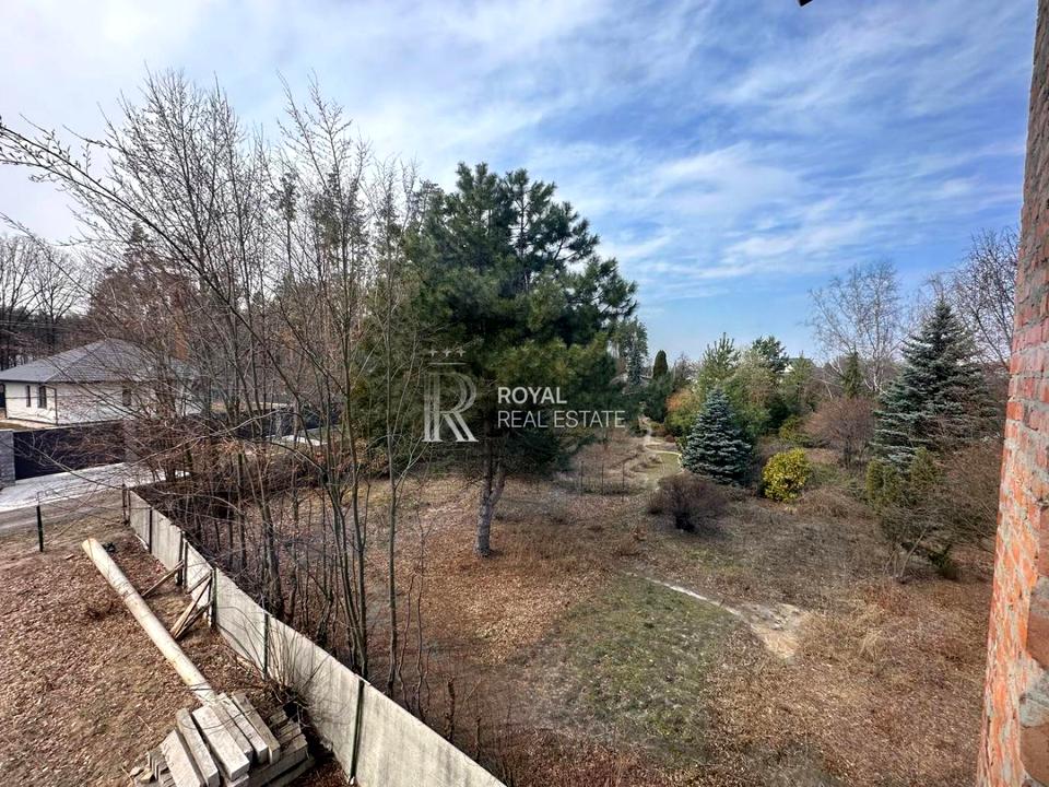 Будинок, 3 поверхи, 5 кімнат. Матеріал перекриттів - монолітний залізобетон. Площа ділянки 16 соток. Планування кімнат Роздільне. Холодна вода - свердловина, гарячої води немає. В будинку 3 балкони. Тип кухні - кухня-студія. Покриття даху - металочерепиця. У будинку є Підігрів підлоги, Камін, Ванна, Сигналізація, Гараж. Загальний стан будинку - Без ремонту. Кількість санвузлів: 4. Зовнішнє утеплення стін. Комісія за послуги 5 %