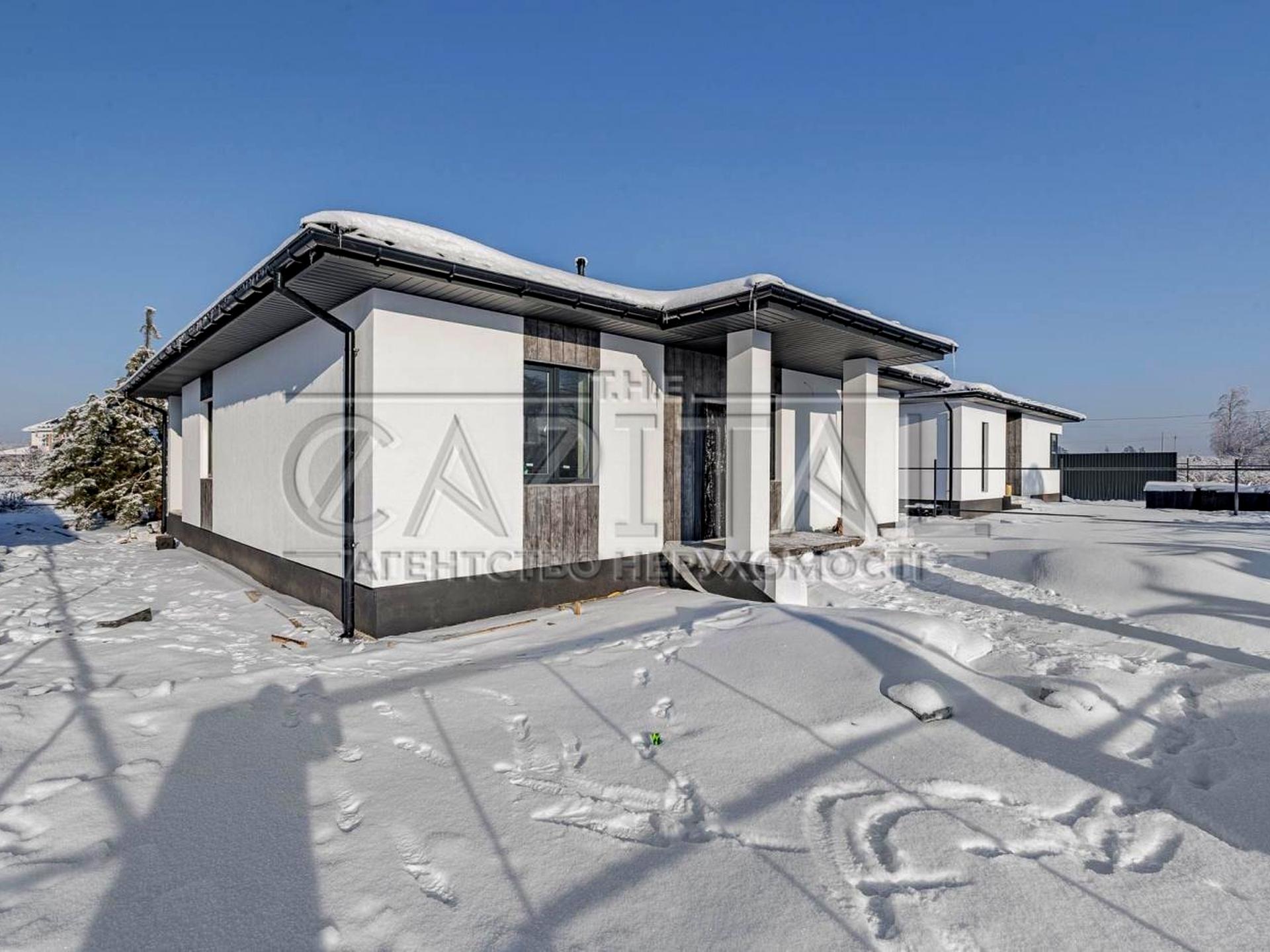 Пропонується сучасний одноповерховий будинок площею 93 м² на ділянці 9 соток у затишному та перспективному передмісті Києва — Путрівка.