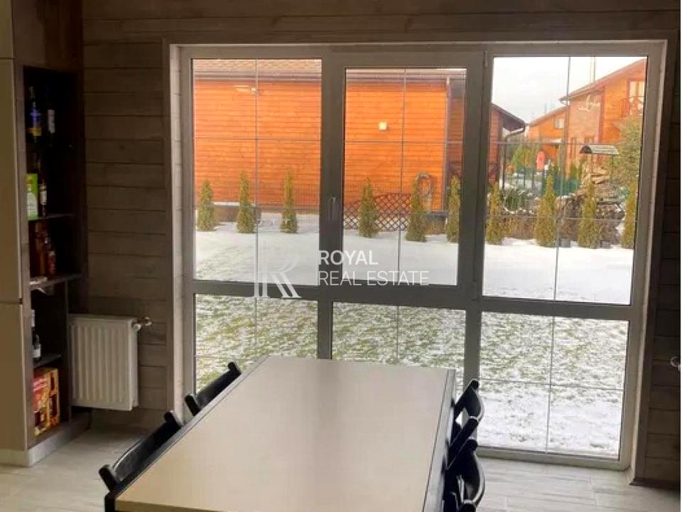 Дім розташований всього за 16 км від міста, з прямими маршрутками від м. Святошин, Академмістечко та м. Героїв Дніпра, Оболонський район. Виготовлений за канадською технологією з закарпатської деревини, будинок створює неповторну атмосферу затишку та комфорту.