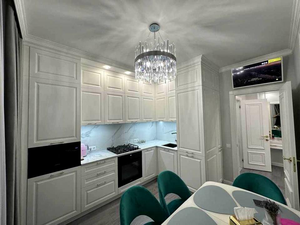 • Простора кухня з мармуровим фартухом та вбудованою технікою