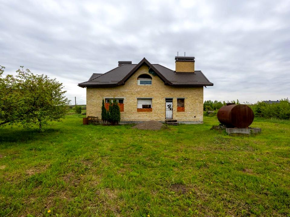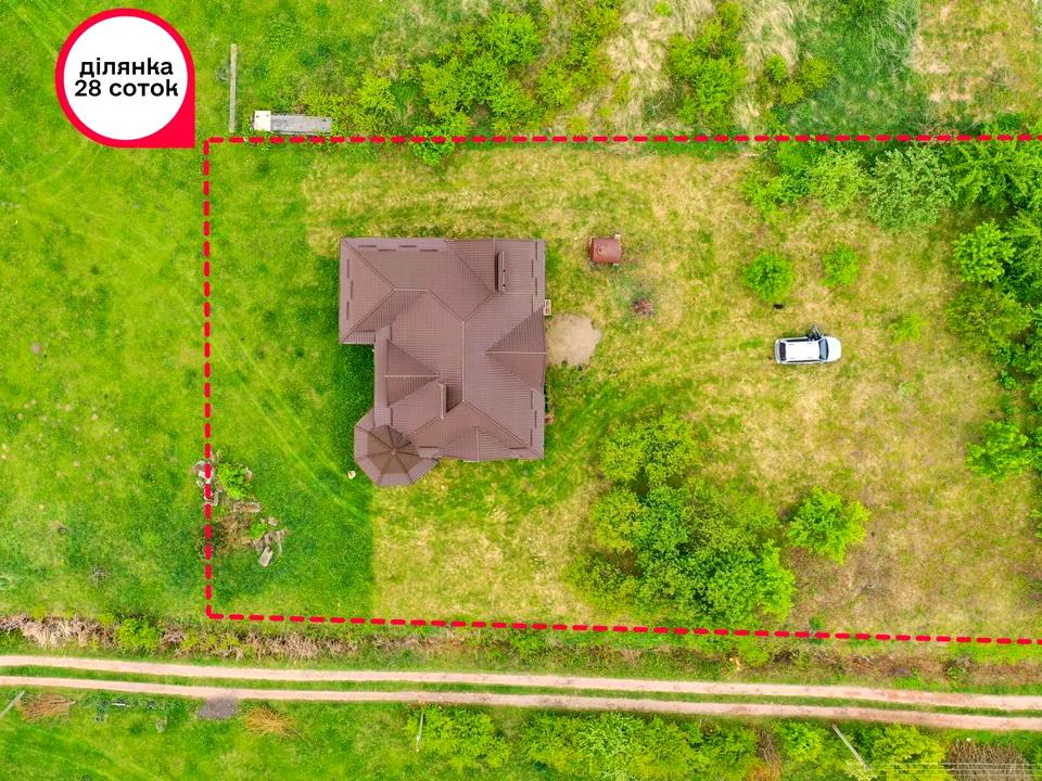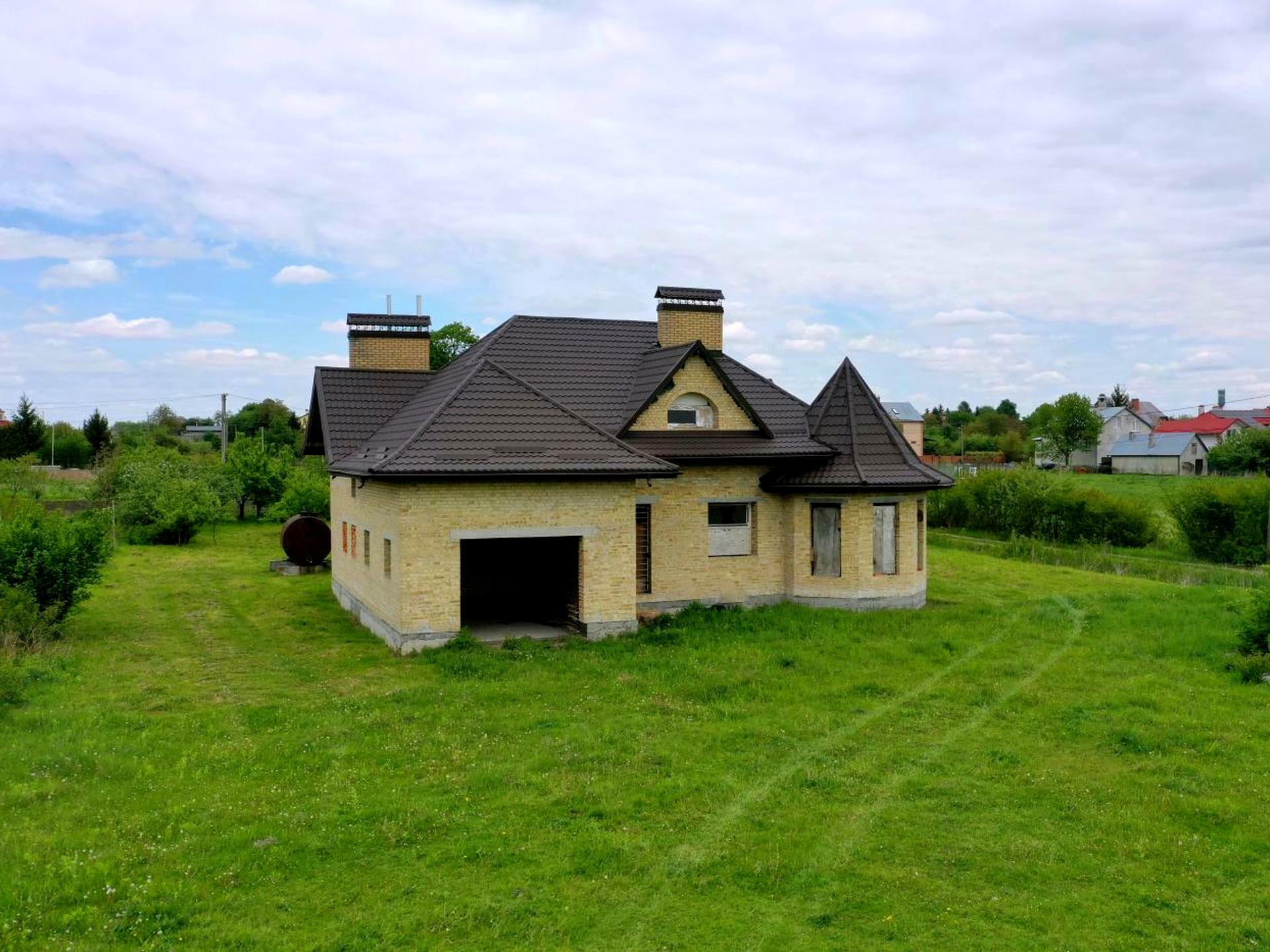 Будинок, 2 поверхи, 6 кімнат. Матеріал стін - цегляний, фундамент будинку - залізобетон. Під'їзд до будинку - асфальт. Площа ділянки 28 соток. Висота стелі 3.3 метра. Вид з вікон у двір. Планування кімнат Роздільне. Газ на вулиці. Холодної води немає, гарячої води немає. Опалення немає. У будинку 2 роздільних санвузла. Сантехніки немає. Вхідні двері залізні. Тип кухні - кухня-їдальня. Покриття даху - металочерепиця. Немає огорожі. Немає підвалу. У будинку є . Будинок побудований в 2012 році. На території ділянки є сад, гараж, город. Загальний стан будинку - Без ремонту. Поруч є школа, дитсадок, зупинки, розважальні заклади, супермаркет, ліс. Торг доречний, Терміново, Прямий продаж, Вільна. Комісія за послуги 5 %