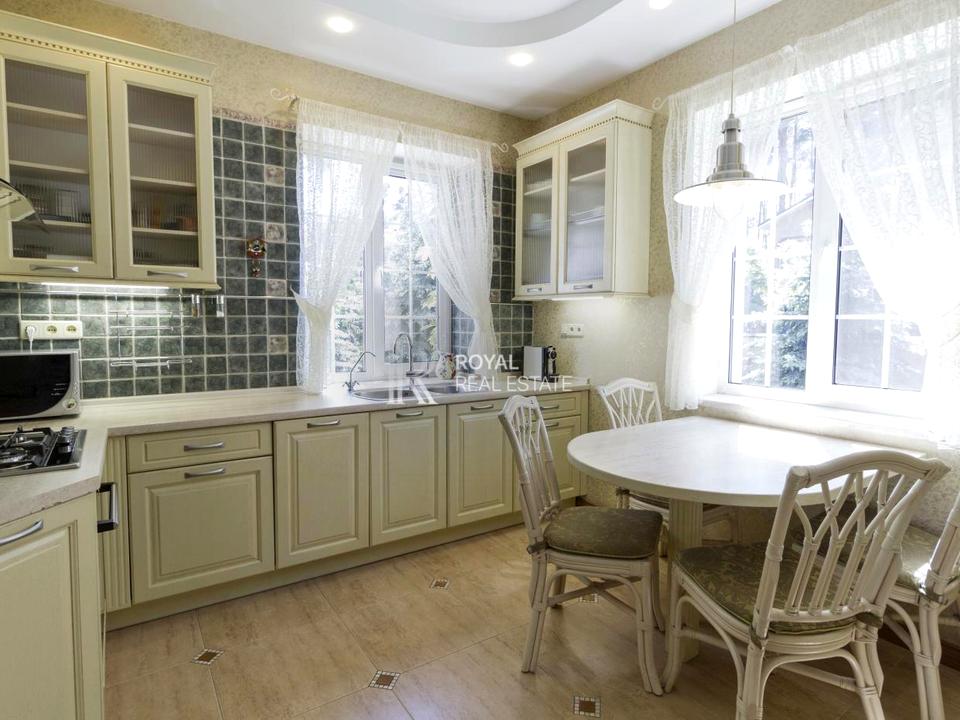 Територія під охороною, зручний та просторий проїзд до будинку. Всі умови для комфортного проживання: простора вітальня, їдальня, спальня для гостей, та окрема кімната для домробітниці.