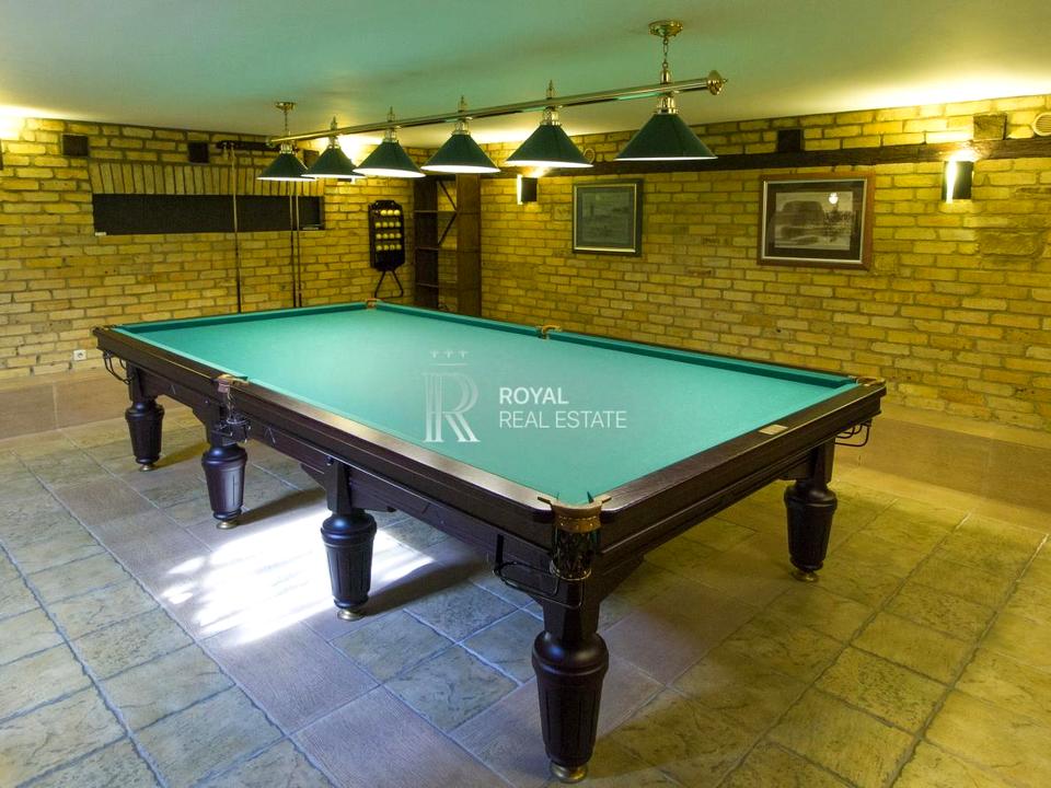 Помістя має авторський архітектурний проєкт із вишуканим інтер'єром у класичному англійському стилі, що гармонійно поєднує меблі з Англії та США.