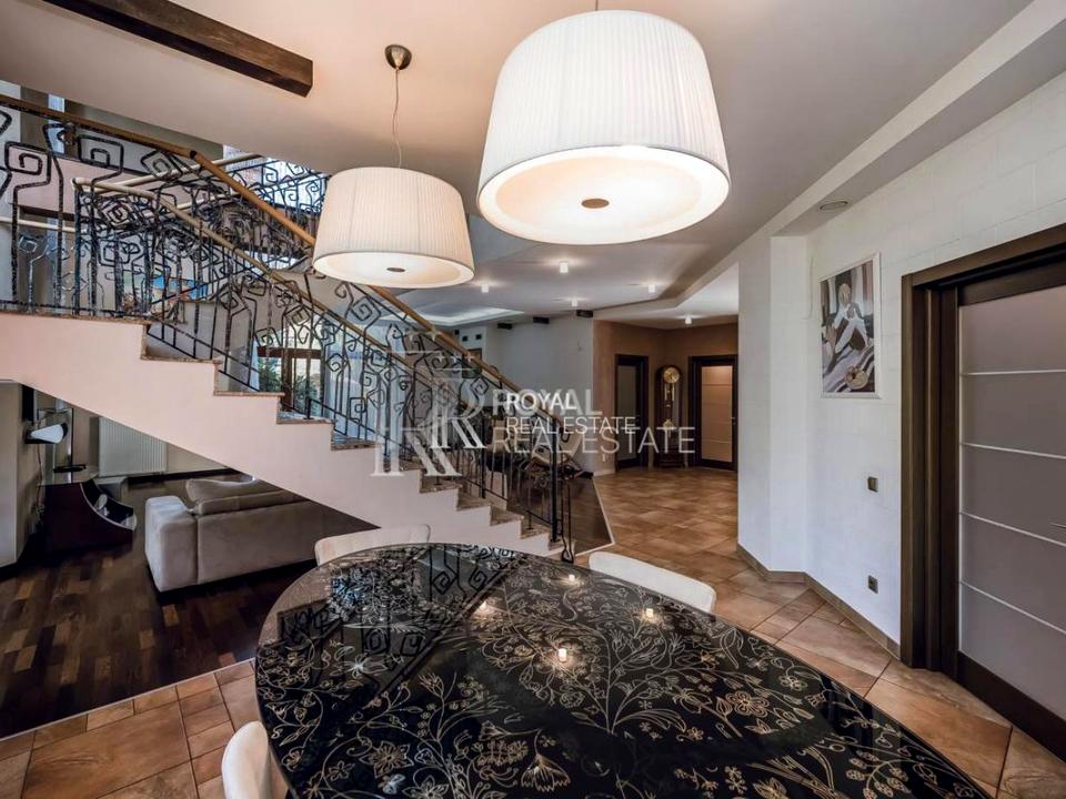Перший поверх: кухня, їдальня, гостьова з каміном (друге світло), вбиральня, з/в, пральня, тех. кімната, сауна. Наявність басейну ідеальна можливість навчити дитину плавати.