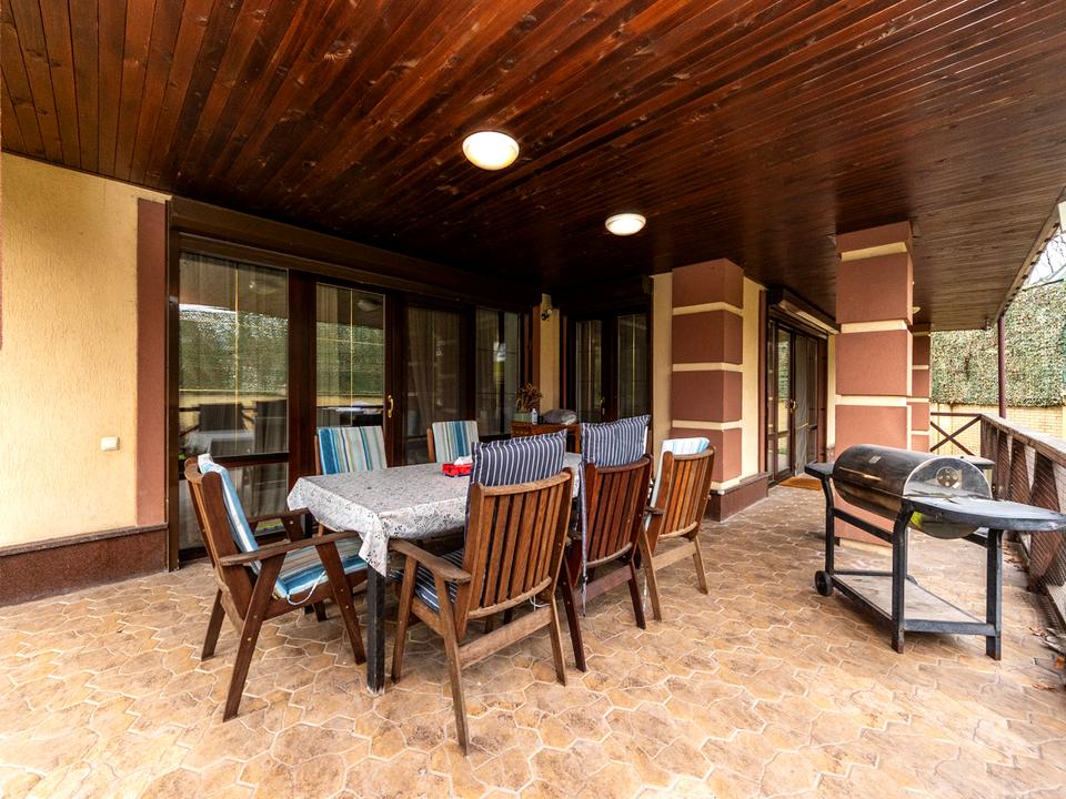 Будинок двоповерховий 400 кв. м. з терасою + літній цегляний будиночок на території з альтанкою, в стилі основного будинку. Земельної ділянки 18 соток.