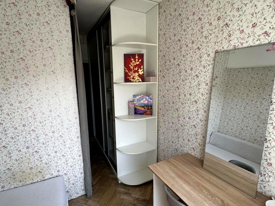 Кімната в 5-кімнатній квартирі, Комунальна квартира. Висота стелі 2.5 метра, Технологія будівництва - Цегляна, Тип будинку - Хрущівка. В кімнаті 1 вікно, Вид з вікна у двір. Кімната Ізольована, Квартира перепланована. Є газ, кухонна плита газова. Гаряча вода - електричний бойлер. Опалення центральне. Суміщений санвузол, туалет/ванна. Сантехніка нова. Проведені металопластикові труби, нові. Вхідні двері дерев'яні. Покриття підлоги - ламінат. Балкона немає. Лоджії немає. Стан стін - ремонту не потребують, стеля шпалери. Вікна металопластикові, нові. Міжкімнатні двері дерев'яні, нові. Тамбур окремий, капітальний. В кімнаті є Шафа, Ліжко, Пральна машина, Холодильник. Загальний стан кімнати - З ремонтом. Поруч є школа, дитсадок, зупинки, розважальні заклади, супермаркет, парк. Надання документів. Сантехніка нова. Нові. Інтернет оптоволоконний. Комісія за послуги 50 %