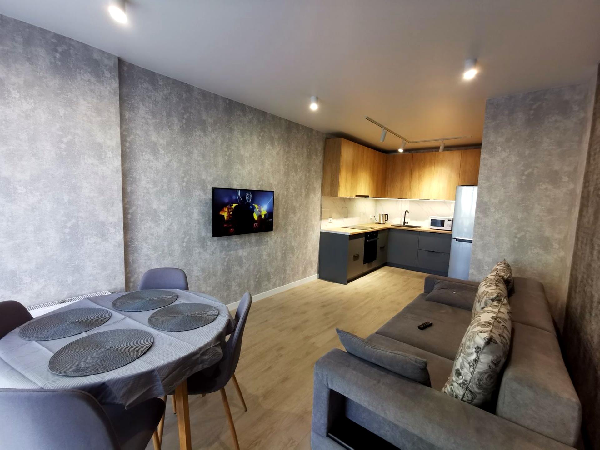 В квартирі 1 кімната, Тип будинку - Спец. проект. Будинок побудований в 2021 році. Загальний стан квартири - З ремонтом. Тип кухні - кухня-студія. Комісія за послуги 50 %