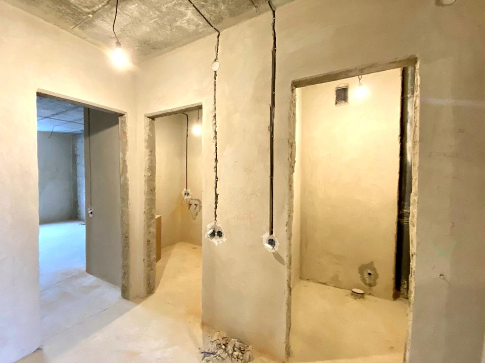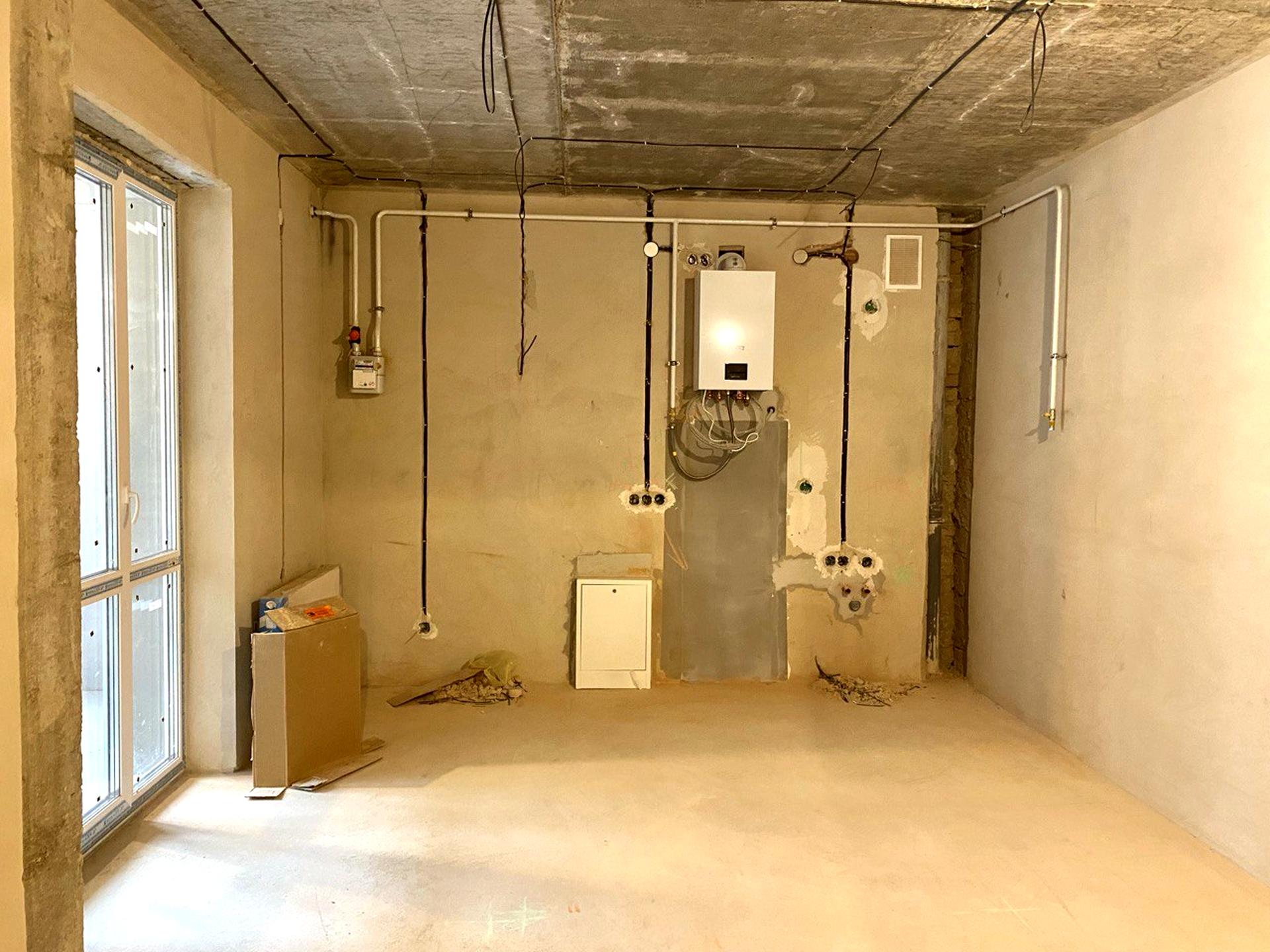 Розведена електрика та зроблена чорнова штукатурка стін та чорнова стяжка підлоги.