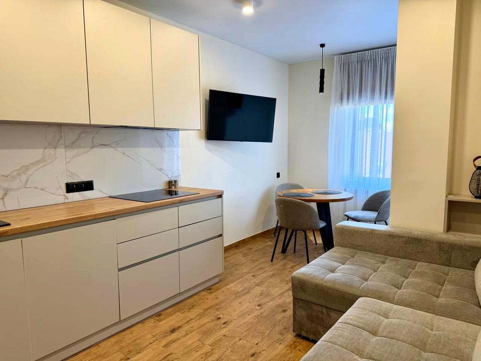 В квартирі 1 кімната, Тип будинку - Спец. проект. Немає газу, кухонна плита електрична. Немає балкона. У квартирі є Телевізор, Підігрів підлоги, Кондиціонер, Пральна машина, Ванна, Холодильник, Мікрохвильовка, Посудомийна машина. Будинок побудований в 2022 році. Загальний стан квартири - З ремонтом. Гаряча вода - електричний бойлер. Кількість санвузлів: 1. Тип кухні - кухня-студія. Кількість спален: 1. Комісія за послуги 2 %