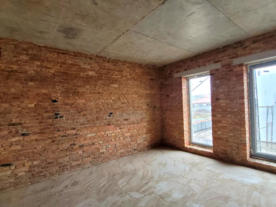 Котедж, 2 поверхи, 3 кімнати. Матеріал стін - цегляний, фундамент будинку - залізобетон, матеріал перекриттів - монолітний залізобетон. Під'їзд до будинку - асфальт. Площа ділянки 2 сотки. Висота стелі 2.8 метра. Вид з вікон у двір, на проїжджу частину. Планування кімнат Роздільне. Газ природний. Холодна вода - водопровід, гарячої води немає. Опалення немає. У будинку 2 роздільних санвузла, туалет/ванна/душ. Сантехніки немає. Розводки труб немає. Сходи бетонні. Покриття підлоги - стяжка, підігріву підлоги немає. В будинку немає балконів. Тип кухні - кухня-студія. Вікна металопластикові, нові. Покриття даху - металочерепиця. Є огорожа. Немає підвалу. У будинку є Лічильники. Будинок побудований в 2025 році. Централізована каналізація. Загальний стан будинку - Від будівельників (з обробкою). Поруч є зупинки, розважальні заклади. Прямий продаж. Зовнішнє утеплення стін. Працює без світла - вода, газ. Без комісії