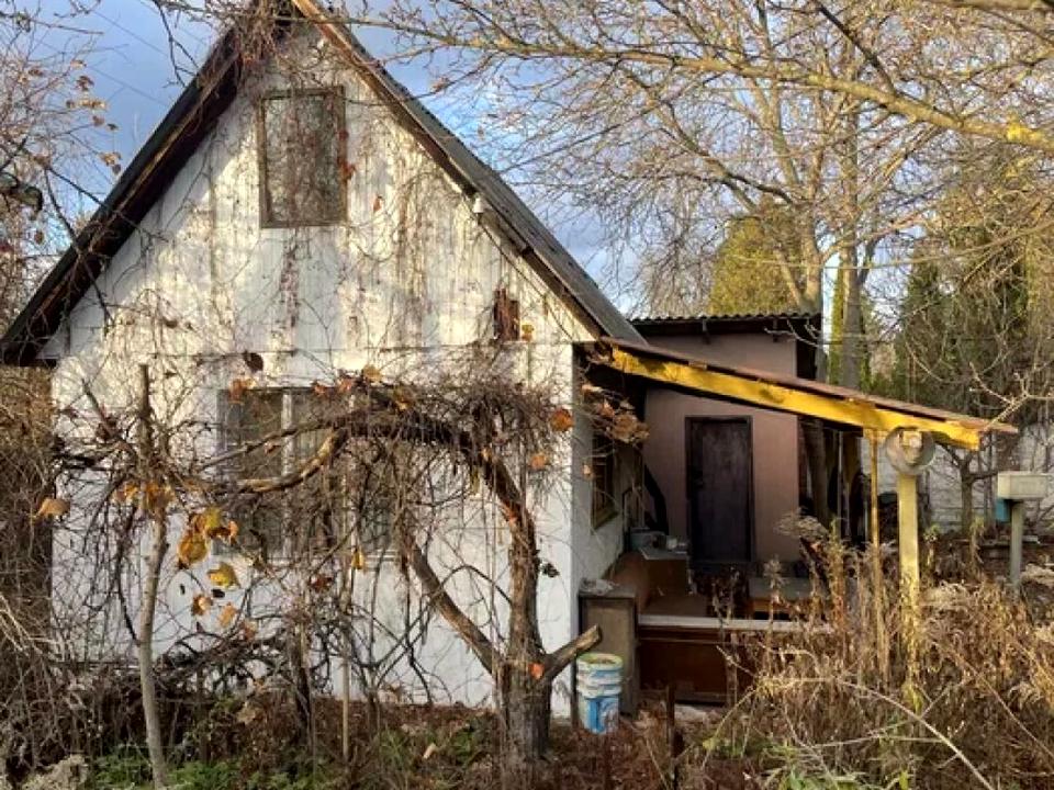 На території старий будинок., сад, город.