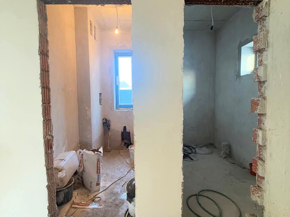 стіни якісно пошпакльовані — готові під фарбування або декоративну штукатурку. Чистова стяжка з підігрівом підлоги на першому поверсі, стеля утеплена мінеральною ватою.