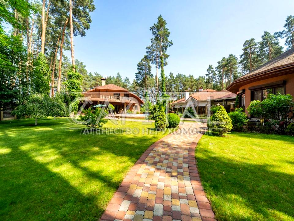 Ділянка 25 соток оточена хвойними деревами, є додатково 20 соток землі в оренді, басейн з протитечією (8x5 метрів)