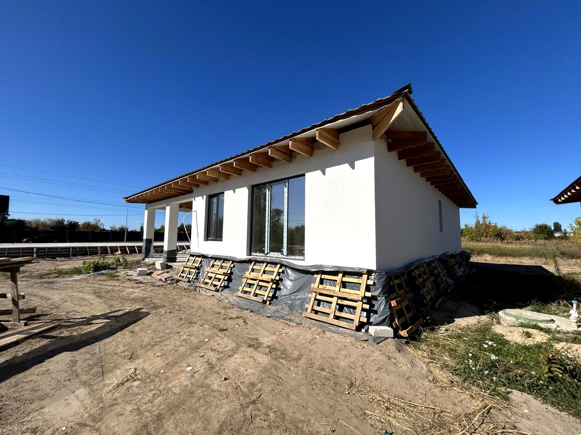 Дом, 1 этаж, 3 комнаты. Материал стен – газоблок, фундамент дома – железобетон, материал перекрытий – дерево. Подъезд к дому – асфальт. Площадь участка 4 сотки. Высота потолков 2.8 метра. Вид из окон во двор. Планировка комнат Раздельная. Газ природный. Холодная вода - скважина, горячая вода - газовый котел. Отопление котел газовый. В доме 2 раздельных санузла, туалет/ванна. Сантехники нет. Разводки труб нет. Входная дверь бронированная, нет лестницы. Покрытие полов - стяжка. В доме нет балконов. Тип кухни - кухня-студия. Окна металлопластиковые, новые. Покрытие крыши - металлочерепица. Есть ограждение. Нет подвала. В доме есть Счетчики. Дом построен в 2025 году. Своя канализация. Общее состояние дома - С ремонтом. Автопарковка, Возможность прописки. Рядом есть остановки, речка/озеро, лес. Срочно, Прямая продажа. Интернет проводной (кабельный). Наружное утепление стен. Работает без света - газ, интернет. Без комиссии