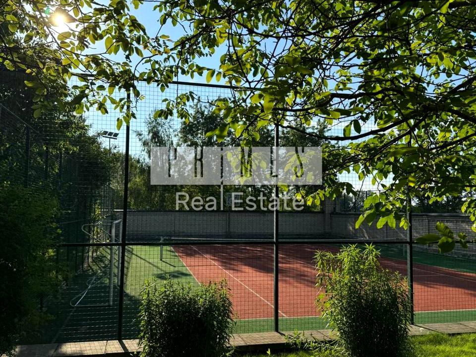 На территории есть - теннисный корт, бассейн с подогревом, баня, беседка, гараж и здание для охраны.