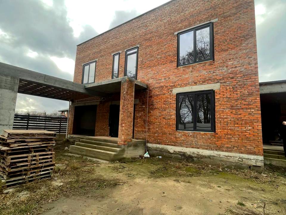 Двоповерховий якісний будинок у чорновому стані. Велика кухня-вітальня, 4 кімнати, 3 санвузли, просторий гараж. Центральна каналізація, свердловина, електрика. Прекрасна ділянка, тиха вулиця.