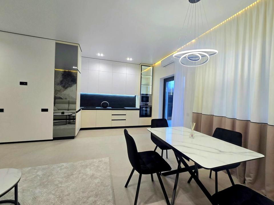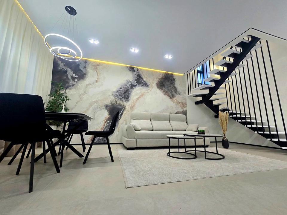 Таунхаус, 2 этажа, 3 комнаты. Материал стен – кирпичный, материал перекрытий – сборный железобетон. Подъезд к дому – асфальт. Площадь участка 4 сотки. Высота потолков 2.8 метра. Планировка комнат Раздельная. Покрытие полов: покрытие полов - ламинат, покрытие полов - плитка. В доме 1 балкон. Тип кухни - кухня-студия. Нет подвала. В доме есть Подогрев полов, Кондиционер, Стиральная машина, Душевая кабина, Ванна, Холодильник, Микроволновка, Посудомойная машина, Газон, Сад/огород, Зона мангала, Терраса. Дом построен в 2025 году. Своя канализация. Общее состояние дома - С ремонтом. Холодная вода - скважина. Горячая вода - электрический бойлер. Отопление котел электрический. Количество санузлов: 2. Покрытие крыши - металлочерепица. Работает без света - интернет. Количество паркомест: 2. Без комиссии