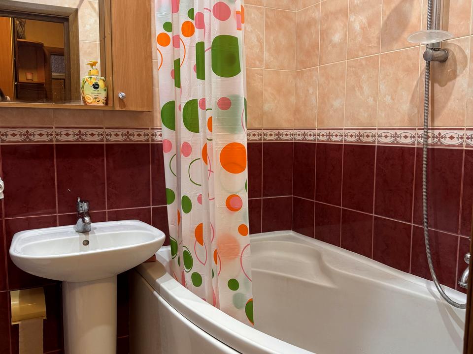 У ванній кімнаті бойлер ємністю 80л, нова пральна машина та велика кутова ванна