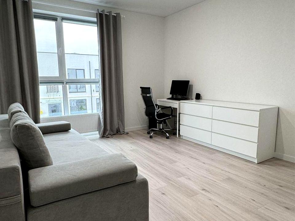 Простора кухня-вітальня, окрема кімната та гостьовий санвузол на першому поверсі