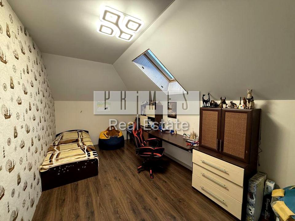 4 спальні, кухня-вітальня, 2 санвузли, комора, чердак (можна облаштувати під ігрову кімнату або комору).