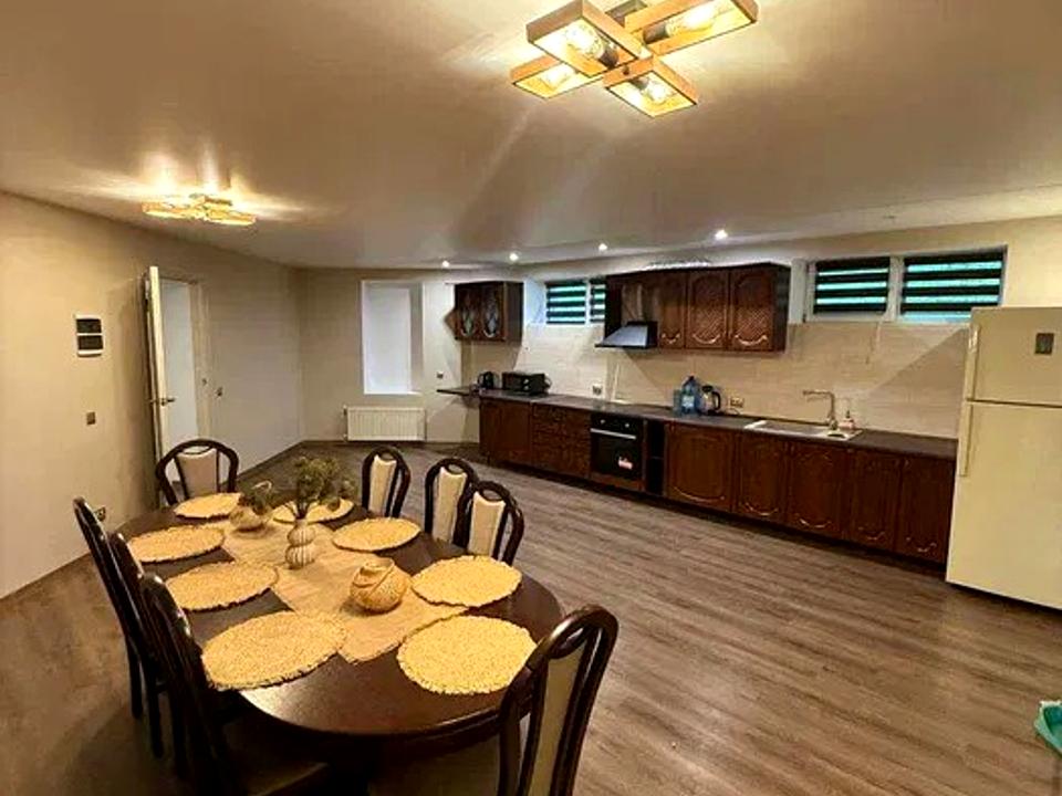 Цокольний поверх: просторе приміщення (можна облаштувати конференц-зал, зал для занять або харчоблок), 2 кімнати, кухня-їдальня, ванна, котельня