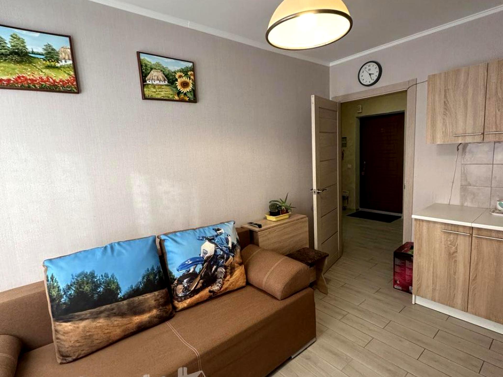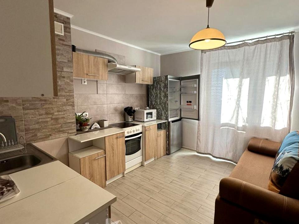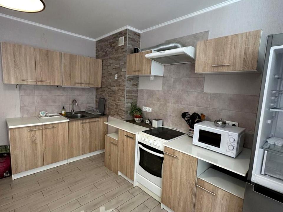 В квартире 1 комната. Квартира стандартная, планировка комнат Раздельная. Кухонная плита электрическая. Горячая вода - электрический бойлер. Отопление центральное. Совместный санузел, туалет/ванна. Есть сантехника. Есть балкон. Окна металлопластиковые. В квартире есть Шкаф, Холодильник, Стиральная машина, Микроволновка. Общее состояние квартиры - С ремонтом. Консьерж. Рядом есть школа, детсад, остановки, развлекательные заведения, супермаркет, лес. Интернет беспроводной. Работает без света - вода, отопление, лифт. Комиссия за услуги 50 %