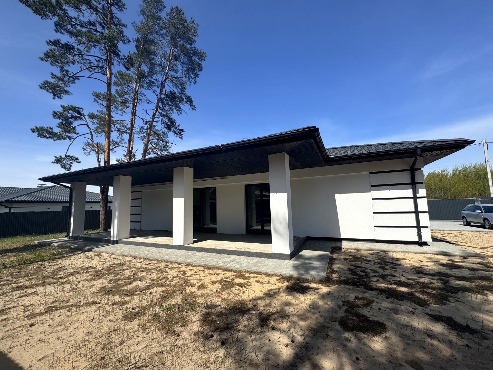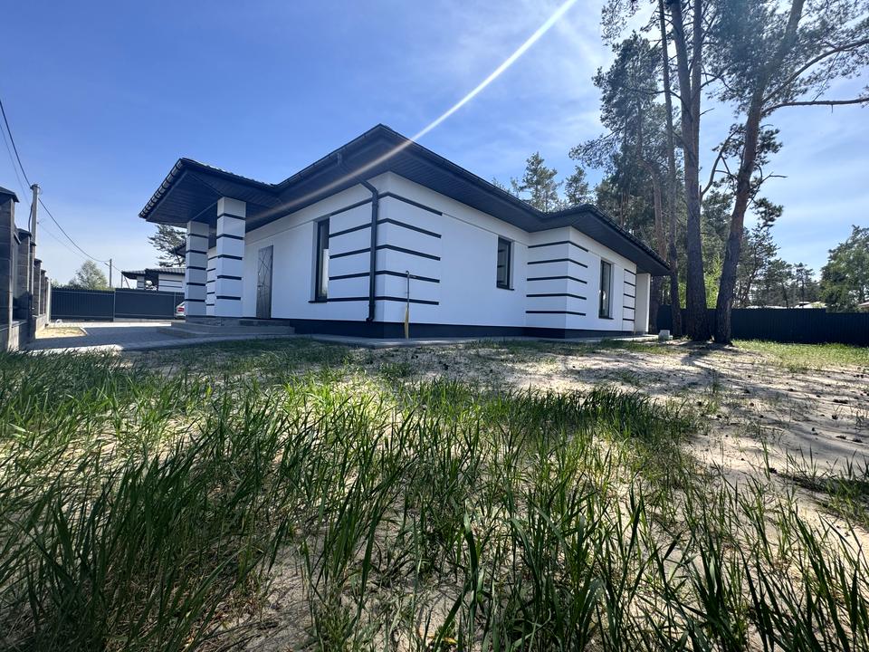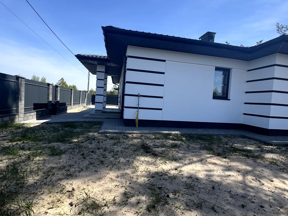 Дом, 1 этаж, 4 комнаты. Материал стен – газоблок, фундамент дома – железобетон, материал перекрытий – дерево. Подъезд к дому – асфальт. Площадь участка 7 соток. Высота потолков 3 метра. Вид из окон во двор. Планировка комнат Раздельная. Газ природный. Холодная вода - скважина, горячая вода - газовый котел. Отопление котел газовый. В доме 2 совместных санузла, туалет/ванная/душ. Сантехники нет. Проведены. Входная дверь бронированная, нет лестницы. Покрытие полов - стяжка. Тип кухни - кухня-студия. Окна металлопластиковые. Покрытие крыши - металлочерепица. Есть ограждение. Нет подвала. В доме есть Подогрев полов. Дом построен в 2022 году. Централизованная канализация. Общее состояние дома - Без ремонта. Рядом есть школа, остановки, развлекательные заведения, супермаркет, парк, речка/озеро, лес. Возможна рассрочка. Интернет оптоволоконный. Наружное утепление стен. Владелец соглашается продать по программе єОселя. Работает без света - вода, отопление, интернет. Без комиссии