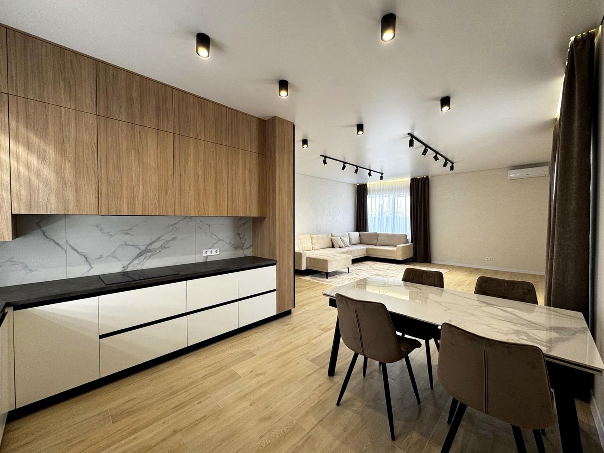 Продаж стильного будиночку в закритому котеджному містечку в Лісовій Бучі в оточенні дерев. Будинок зі стильним ремонтом на 5 сотках, загальна площа 120м2. Простора територія з парковкою, затишний дворик з великою терасою для сімейних вечорів з барбекю. Побудований будинок з газоблоку 300, утеплений пінопластом, заведено 16квт електрики, є газ, центральна каналізація, власна свердловина. В будинку є тепла підлога скрізь, окрім кімнат. При вході в будинку коридор, ліворуч дві кімнати, праворуч ванна кімната і окремий санвузол, праворуч велика кухня студія, прямо спальня з гардеробною. Загалом в будинку 2 гардероби, 3 кімнати, 2 санвузли.