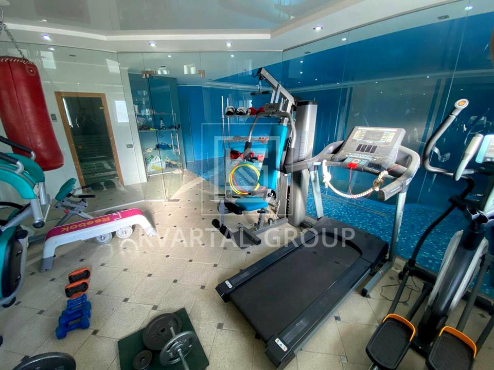 Цокольний поверх: простора баня, власний тренажерний зал з професійним обладнанням, басейн та два гаражі.