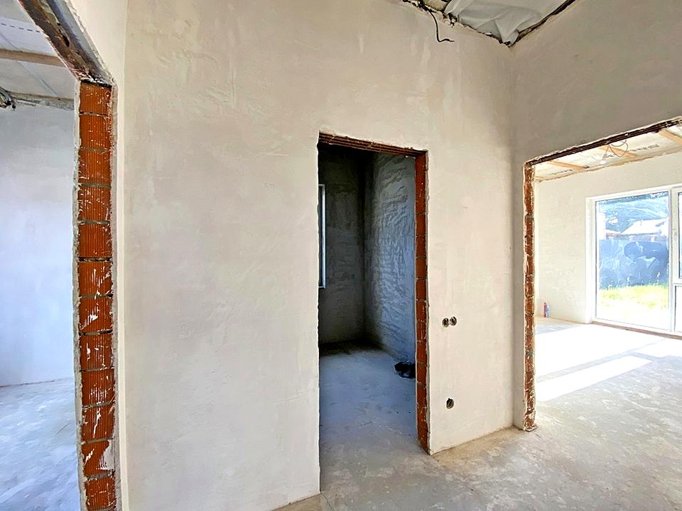 Затишний одноповерховий будинок у новому районі Лісової Бучі. Зведений з енергоефективного керамоблоку (10.5 NF), внутрішні перегородки з керамоблоку (2 NF), утеплений пінопластом 150 мм, фасад – декоративна штукатурка з елементами штучного каменю травертин.