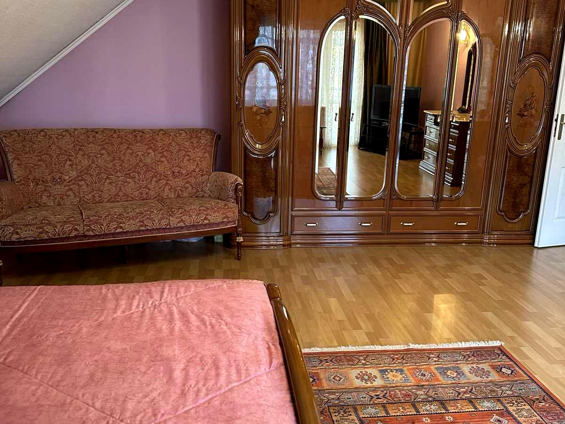 Будинок триповерховий, включно з цокольним поверхом. У будинку 5 кімнат, які включають в себе 4 спальні та одну простору гостинну, два роздільних санвузла. На першому поверсі діючий камін. На цокольному поверсі баня з душовою та кімнатою для відпочинку, велика гардеробна. Гараж на дві машини.