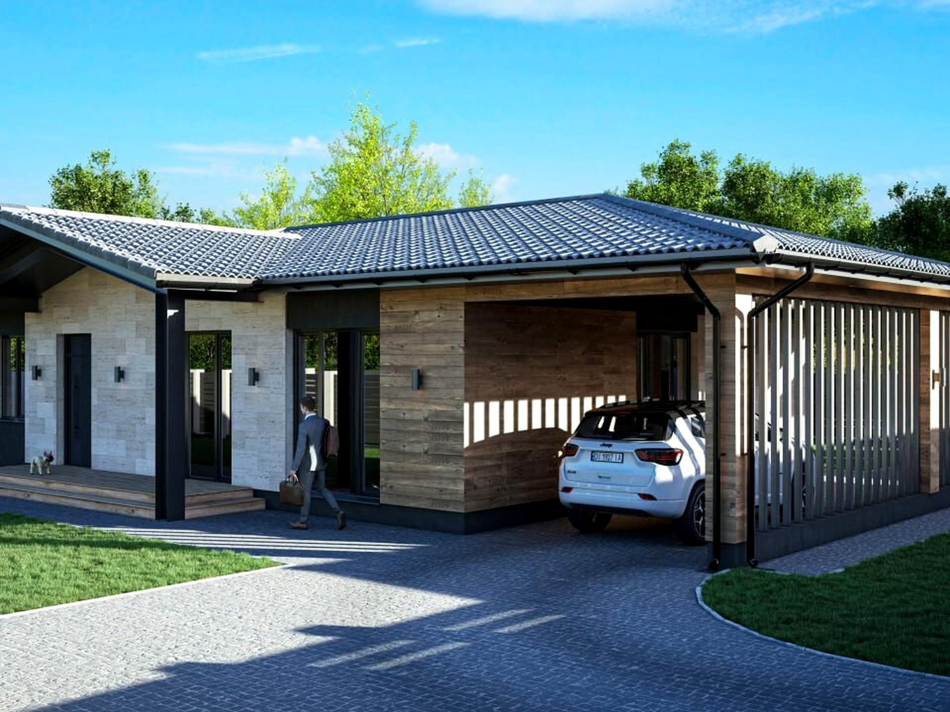 Фасад: травертін, керамограніт