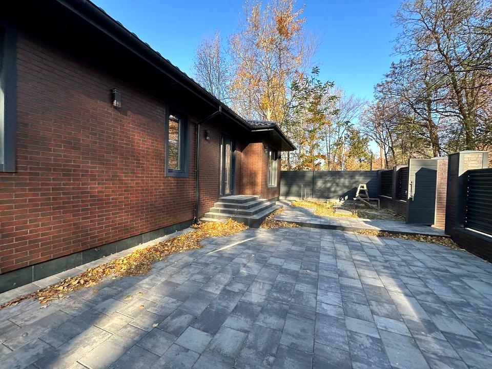 Площа будинку 183 м², ділянка 7 соток. Надійне будівництво з цегли, утеплення, енергоощадні вікна, якісний дах. Є простора крита тераса 28 м² — чудове місце для сімейних вечорів та відпочинку. Територія доглянута, викладена бруківкою, встановлені ворота під автоматику.