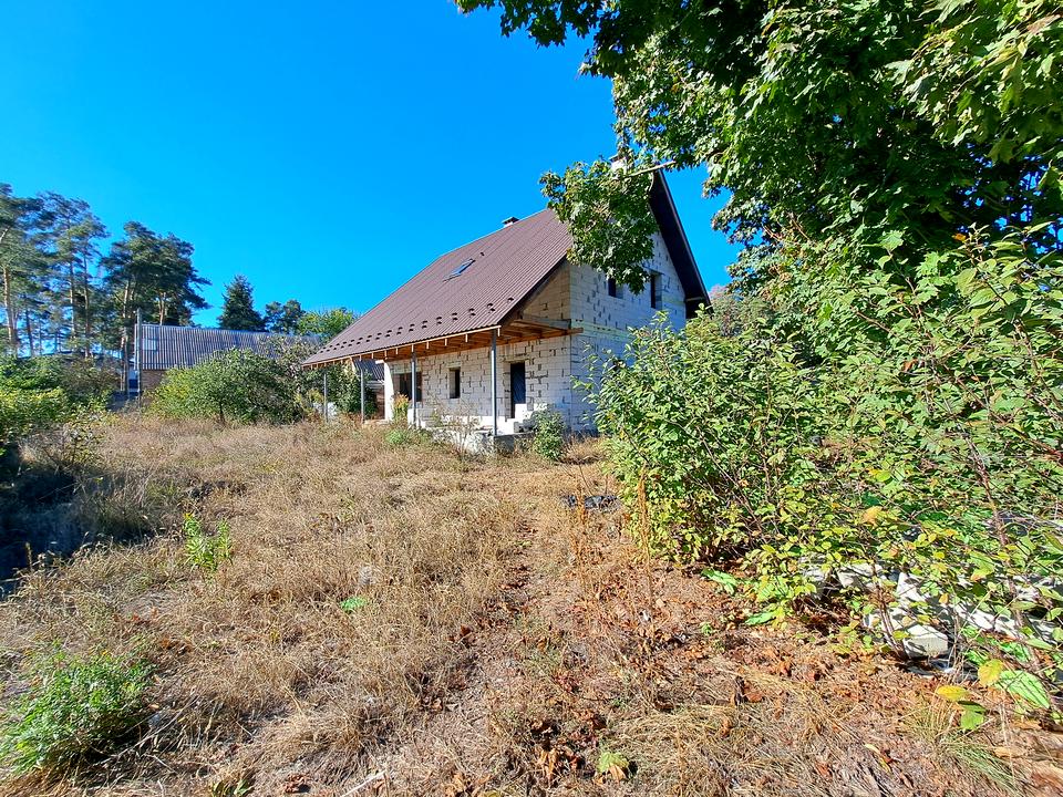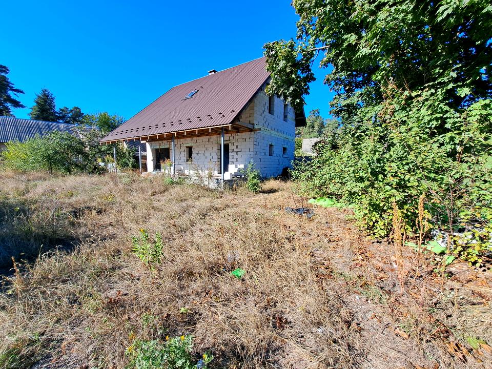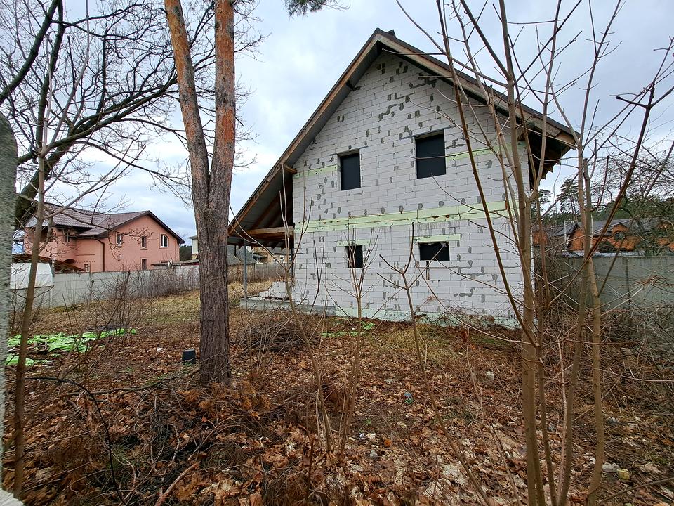 Побудована коробка житлового будинку- вікон немає. Дах - металочерепиця. Матеріал побудови - пеноблок. Перекриття та сходи ж/б.