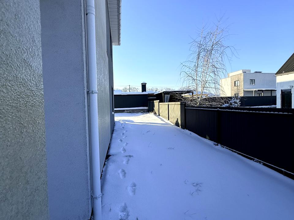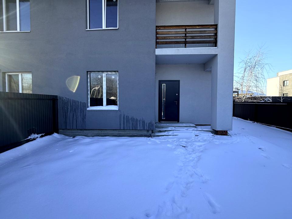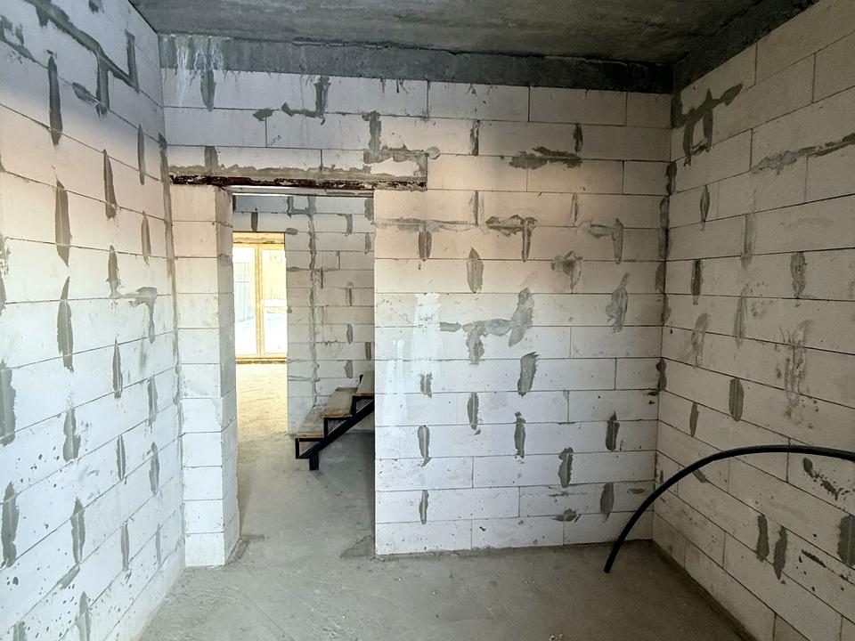 Продається двоповерховий дуплекс площею 115,6 м² на ділянці 3 сотки. Будинок з газоблоку, утеплений, стоять якісні вікна та двері Rehau. Стан — після будівельників (без стяжки та штукатурки), що дозволяє зробити ремонт та розведення електрики повністю під себе. Планування продумане: 1 поверх: кухня-студія з виходом у двір, окрема кімната, санвузол. 2 поверх: спальня з гардеробом і балконом, дві дитячі, ванна кімната.