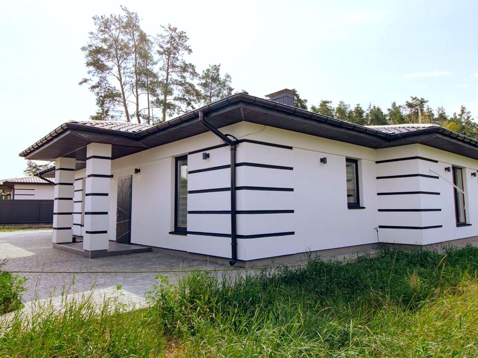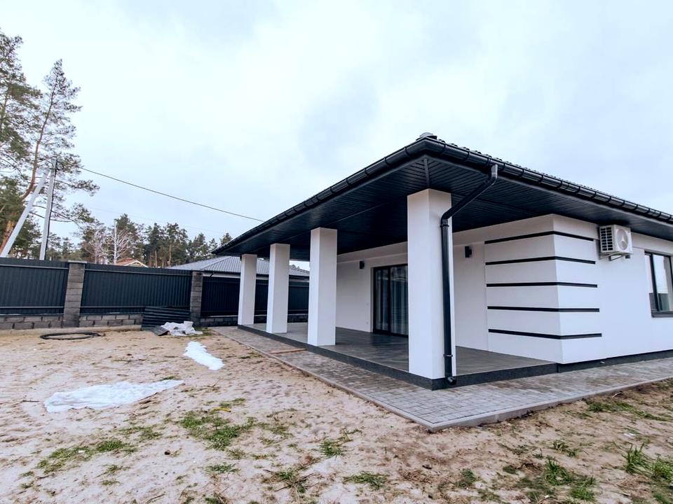Пропонується сучасний одноповерховий будинок площею 100 м², розташований у котеджному містечку поруч із лісовою частиною Бучі. Тиха, зелена локація, комфортна для постійного проживання.
