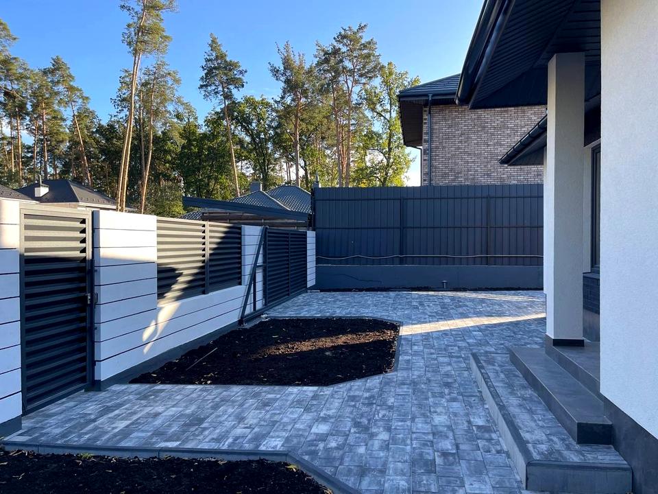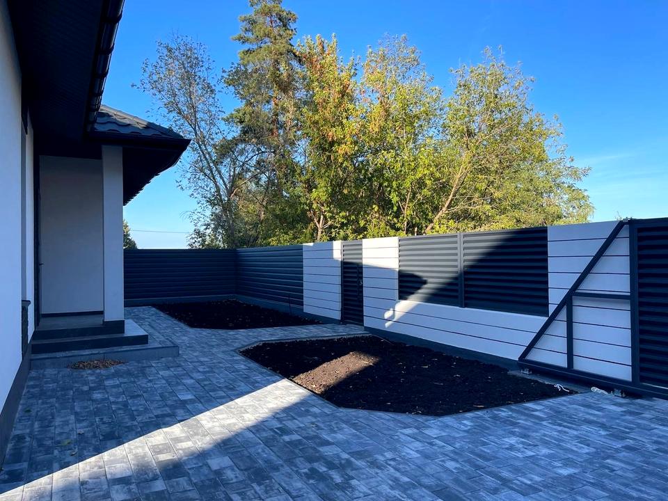 Тераса 15 м2. Благоустрій: відкатні ворота, паркан, чернозем.