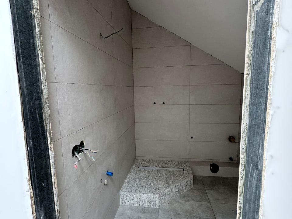 Внутрішнє планування продумане до дрібниць: висота першого поверху — 3,2 метра у чистовому вигляді, мансарда з правильними формами, яка підходить для облаштування повноцінної житлової зони або кабінету. У будинку вже зроблені всі важливі інженерні роботи: тепла підлога, розводка сантехніки, електрики та опалення. Виконано чистове оздоблення: штукатурка, стелі. Санвузли повністю облицьовані плиткою. На перший поверх закуплена плитка на всю площу. Встановлено великий камін, який може обігрівати весь будинок. Закуплені посудомийна машина та холодильник. Встановлена охоронна сигналізація. У подарунок надається генератор.