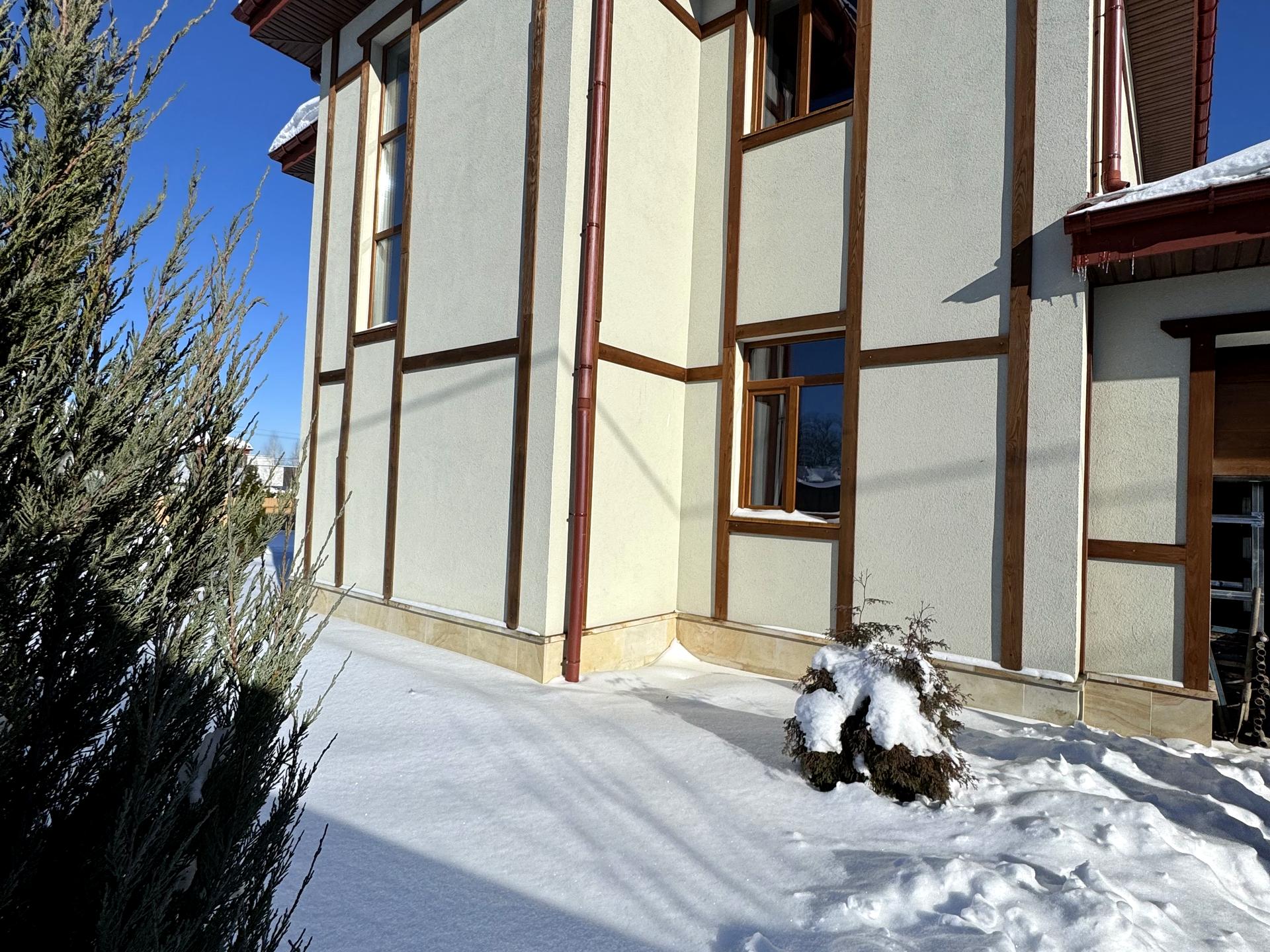 Фасад будинку утеплений базальтовою ватою 100мм. Екологічно чистий матеріал, що не містить токсичних речовин, має відмінні теплоізоляційні якості. Не горить.