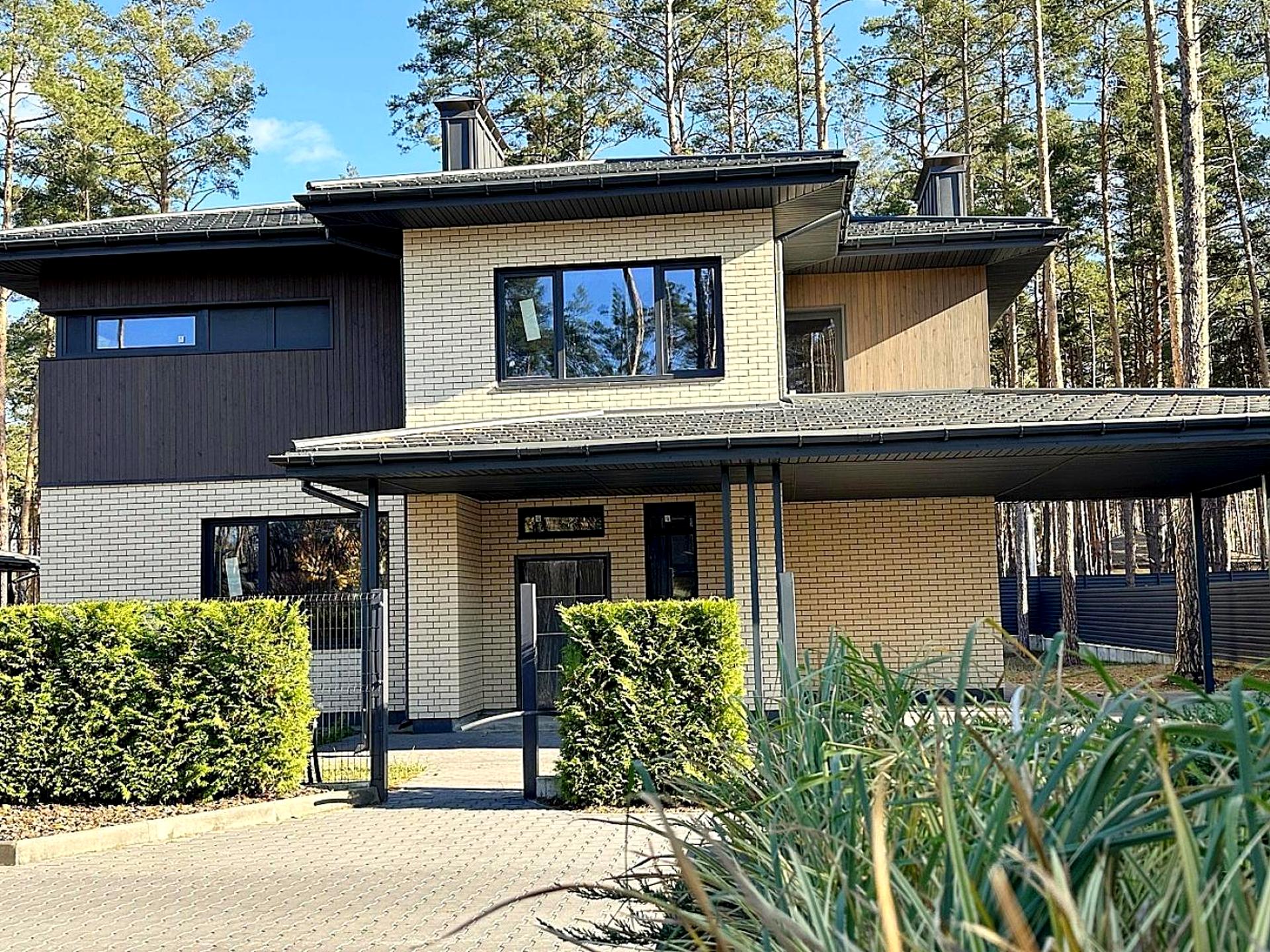 Котедж розташований в лісовій частині Бучі. Затишний куточок міста в оточенні сосен створює атмосферу захищенності і умиротворення.