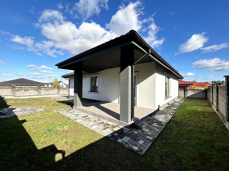 Дом, 1 этаж, 3 комнаты. Материал стен – газоблок, фундамент дома – железобетон, материал перекрытий – дерево. Подъезд к дому – асфальт. Площадь участка 5 соток. Высота потолков 2.8 метра. Планировка комнат Раздельная. Газ на улице. Холодная вода - скважина, горячая вода - электрический бойлер. Отопление котел электрический. В доме нет балконов. Тип кухни - кухня-студия. Покрытие крыши - металлочерепица. Нет подвала. В доме есть Терраса. Своя канализация. Общее состояние дома - Без ремонта. Количество санузлов: 2. Интернет проводной (кабельный). Наружное утепление стен. Работает без света - интернет. Без комиссии