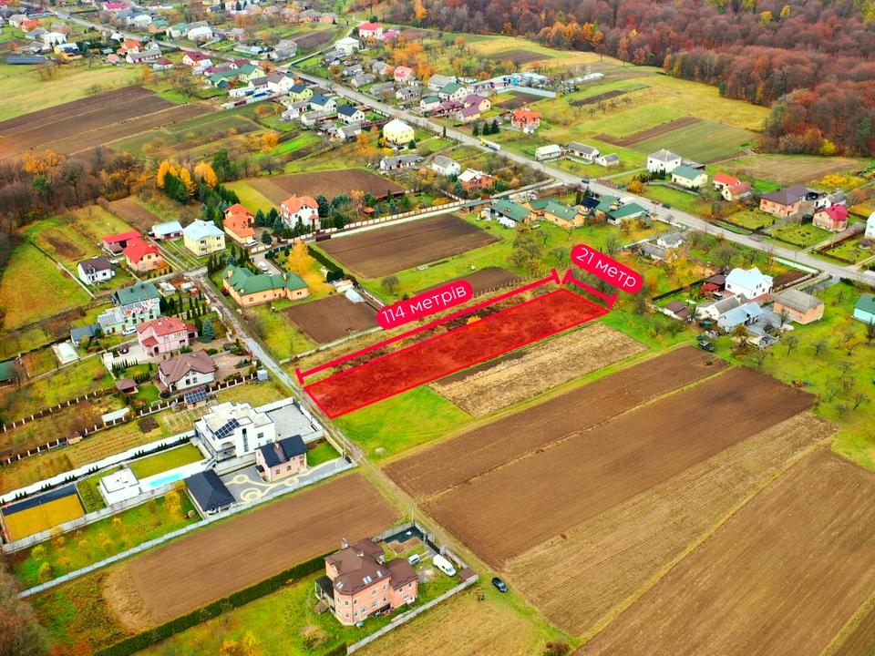 Розмір ділянки- довга, майже прямокутна, що дозволяє зробити затишний двір, сад, город або зону відпочинку позаду будинку.