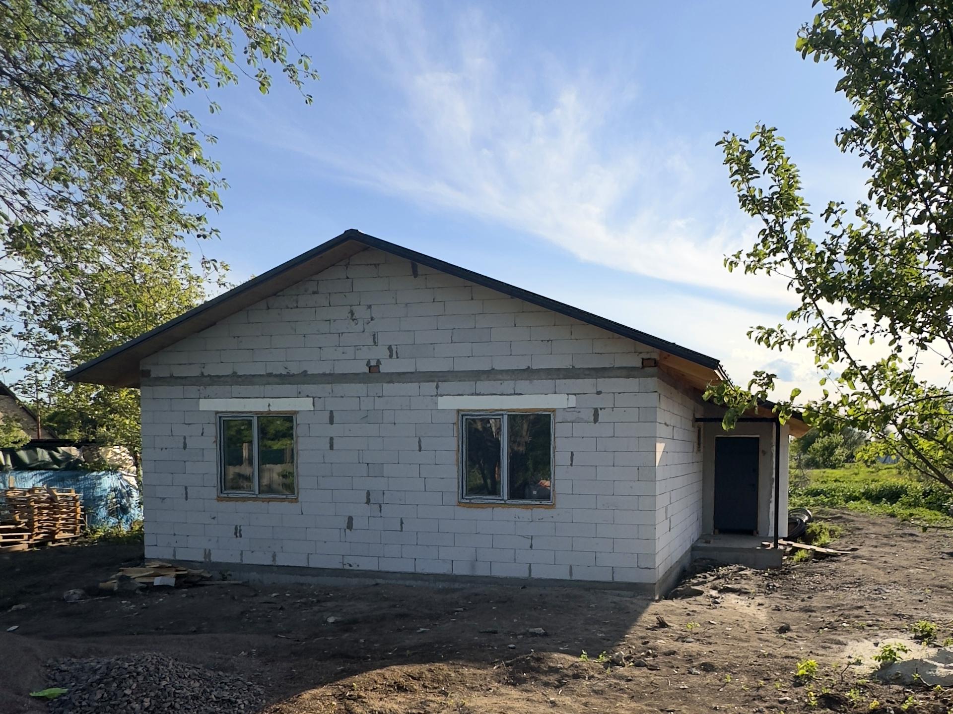 Дом, 1 этаж, 3 комнаты. Материал стен – газоблок, фундамент дома – железобетон. Подъезд к дому – грунт. Площадь участка 15 соток. Высота потолков 3 метра. Планировка комнат Смежная. Есть газ. Есть холодная вода. Раздельный санузел. Входная дверь бронированная, нет лестницы. Нет покрытия полов. Окна металлопластиковые, новые. Покрытие крыши - металлочерепица. Есть ограждение. Нет подвала. В доме есть . Дом построен в 2025 году. Своя канализация. Общее состояние дома - Без ремонта. Рядом есть детсад, школа, остановки, супермаркет, речка/озеро. Торг уместен, Прямая продажа. Наружное утепление стен. Работает без света - вода, газ
