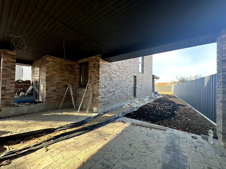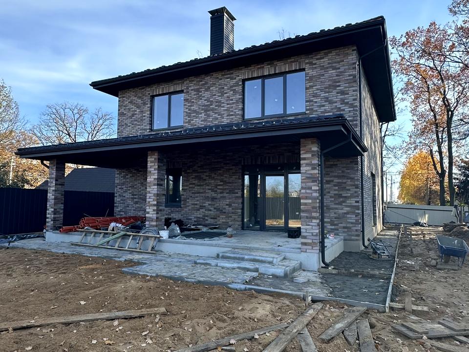 🏡 Двоповерховий цегляний будинок із терасою та навісом на 2 авто