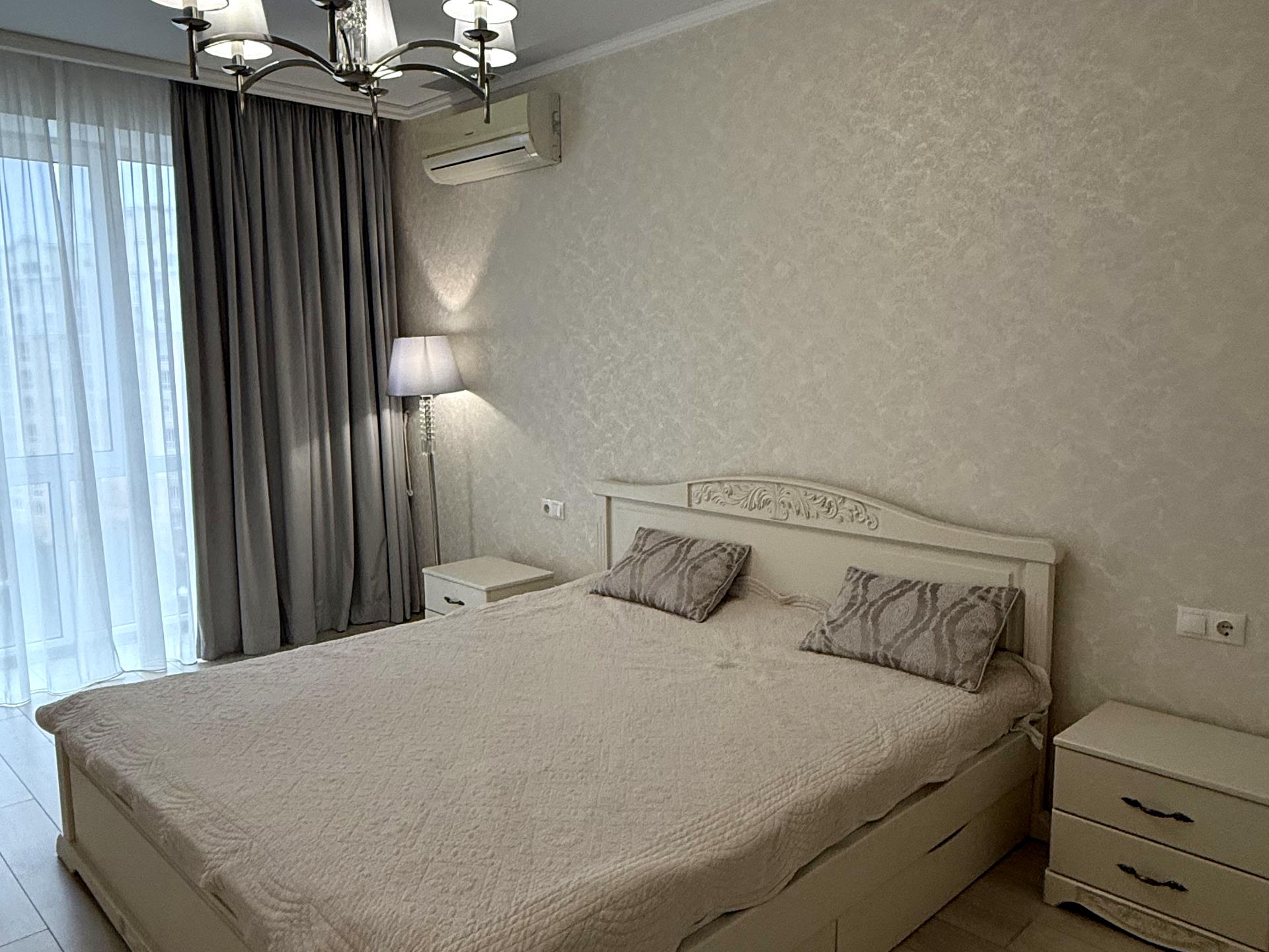 В квартире 3 комнаты, Технологія будівництва - Цегляна, Тип будинку - Спец. проект. Планировка комнат Раздельная. Газа нет, кухонная плита электрическая. Есть балкон. В квартире есть Телевизор, Подогрев полов, Кондиционер, Стиральная машина, Сушильная машина, Ванна, Холодильник, Микроволновка, Посудомойная машина, Посуда, Сигнализация. Дом построен в 2015 году. Общее состояние квартиры - С ремонтом. Безбарьерность: пандус, вход в дом на уровне земли, парковочные места для людей з инвалидностью. Горячая вода - электрический бойлер. Количество санузлов: 1. Интернет оптоволоконный. Работает без света - вода, отопление, интернет, лифт. Комиссия за услуги 50 %